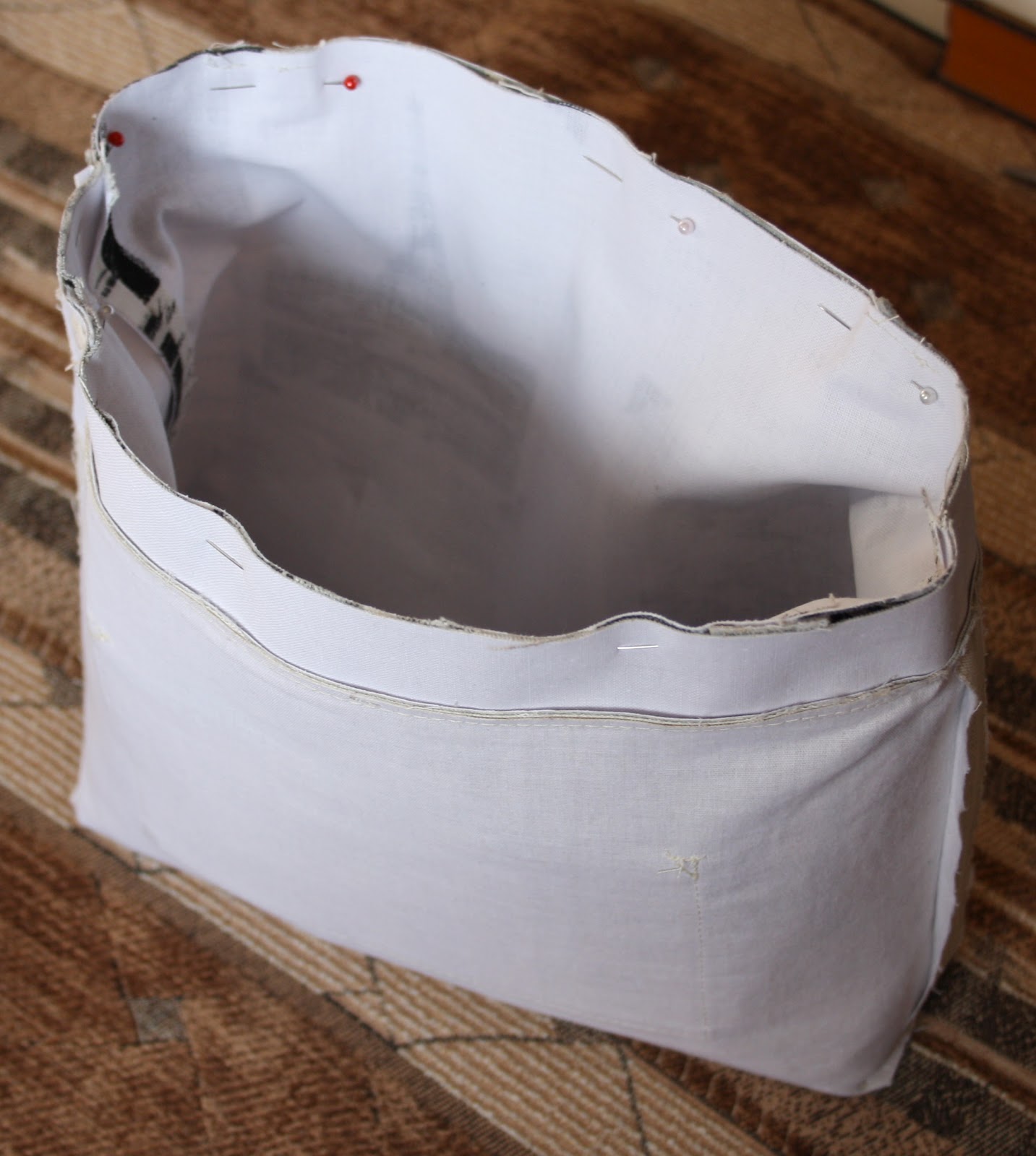 To keep the bag in shape well, it is better to additionally use a cotton fabric lining. Next you need to dock all parts of the bag into one.