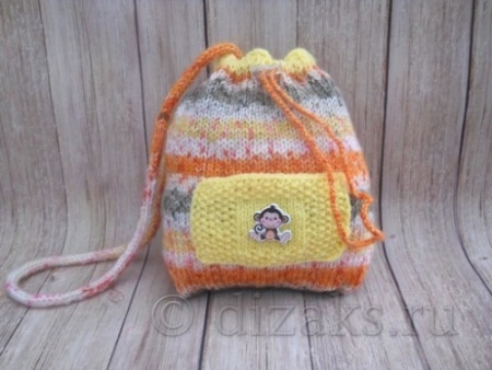 She is so named because this small knot is a way of closing and carrying a bag. Its pattern is simple: one part is the side (the main part of the bag, in which things will lie, and two handles, one shorter than the other) and a round bottom-base. You can stitch a model without a base - it depends on individual preferences.