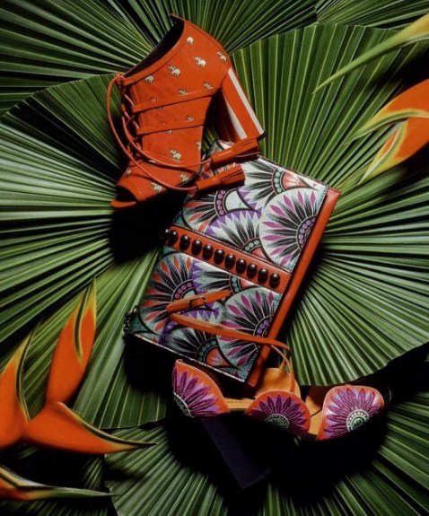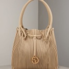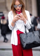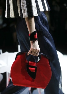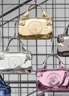 Budget models are made of artificial leather. In addition to these materials, the brand works with textiles. Fabric accessories look no less vivid and spectacular, they often become an ornament of the image.