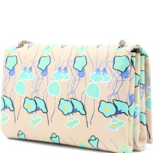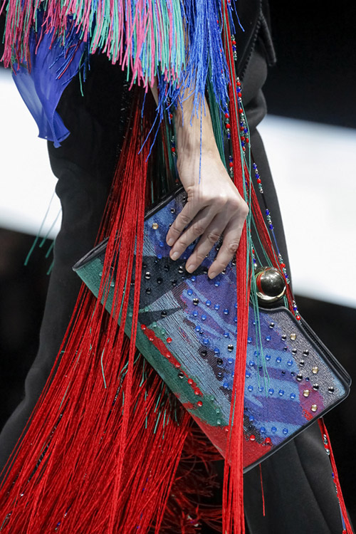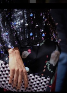 In addition to metal elements, the designer decorates the bags with sparkling rhinestones, knots of the base material, fur, brooches, tassels with fringe, pleating, beads, multi-layered chiffon compositions. Some models he draws lacquered edging on the side faces, bottom and top accessories.