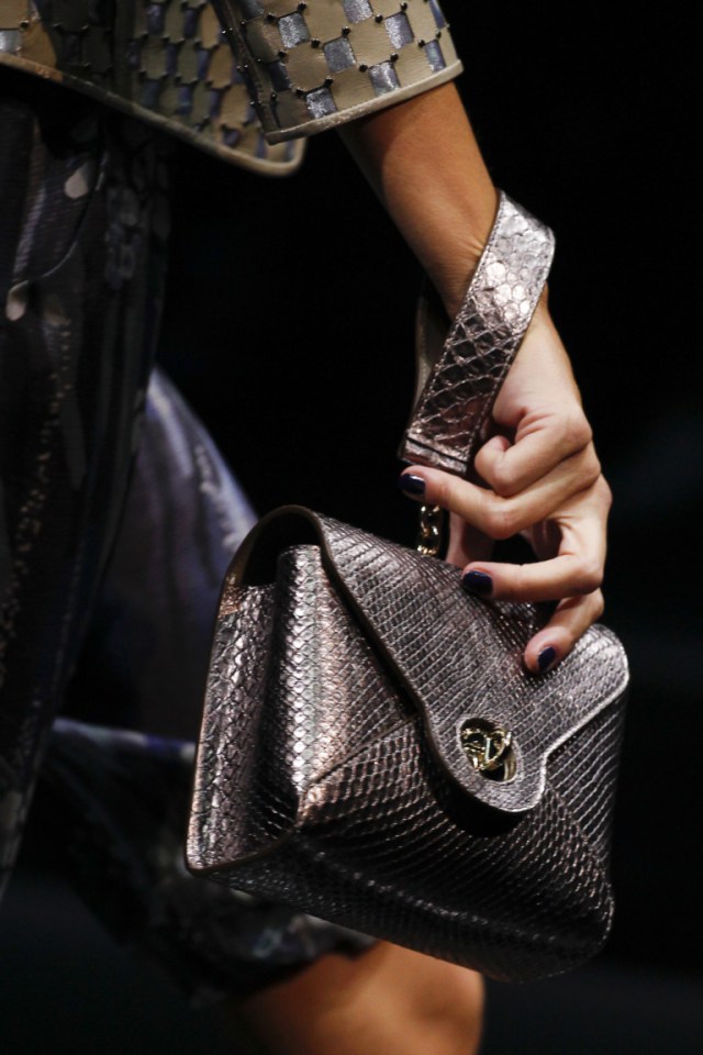 One of the decorative techniques of the designer is the use of textured material. The skin can be smooth, embossed, patent, under the skin of reptiles. In addition, the master of world fashion uses high-quality metal fittings that do not oxidize over time and contribute to improving the strength of products. These are all kinds of zippers, buckles, fasteners, rivets, rings, eyelets, key rings, chains, and even metal handles.