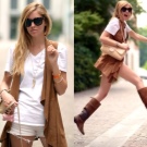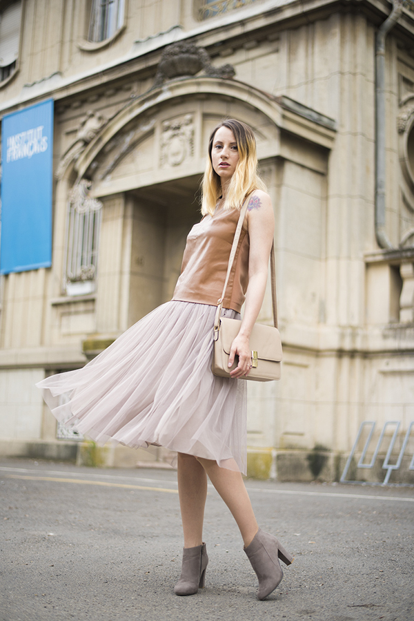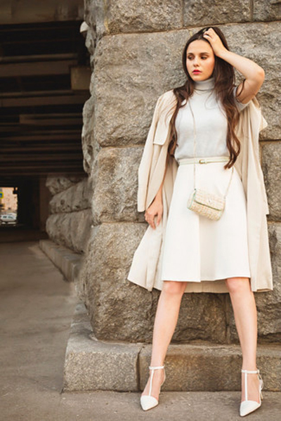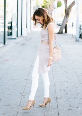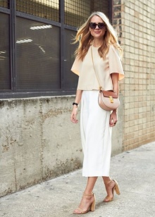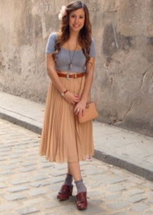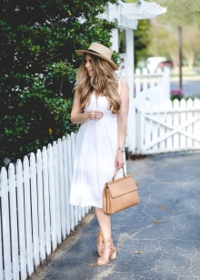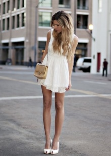 Since this summer trendy fluffy skirts, sewn as a tutu, it will be the most suitable option for creating a stylish urban look with a beige bag. It is necessary to complement the bow with velvet sand-colored T-shirt and suede shoes - and a beautiful summer look is ready.
