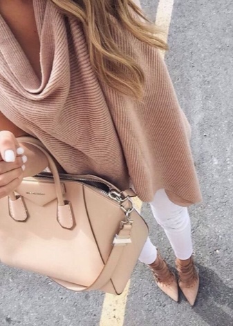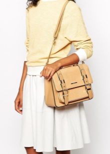 A casual beige bag must be of medium size. Comfortable options on a long strap are especially in demand among women, which will free up their hands and make them feel comfortable for even long walks.