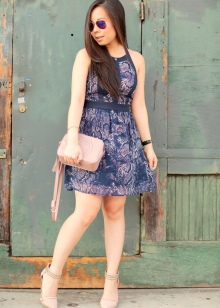 - To create a romantic bow with a dress or skirt should be chosen more miniature handbags. A dress of flying fabrics, complete with flat sandals, will look good with a clutch on a chain.