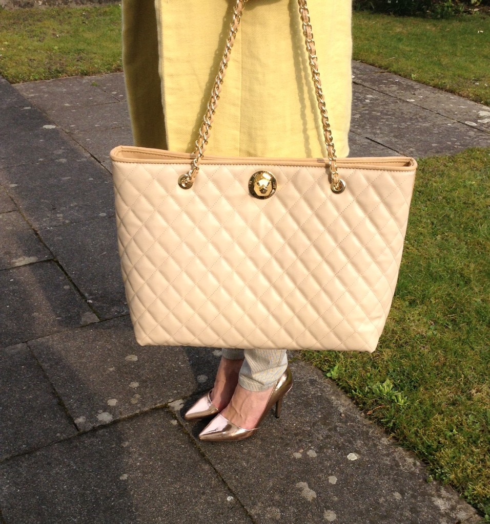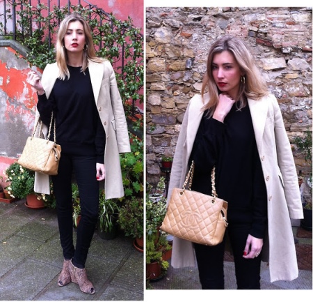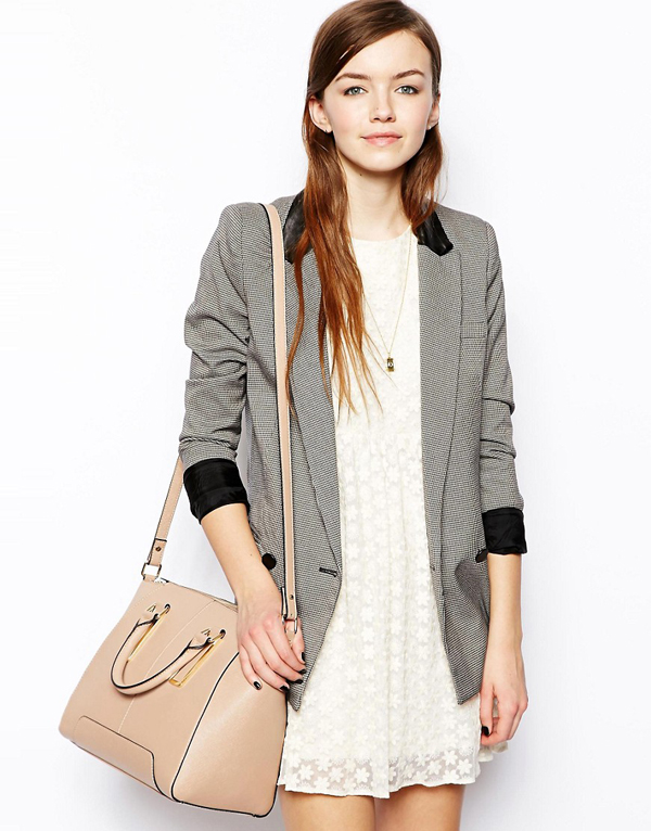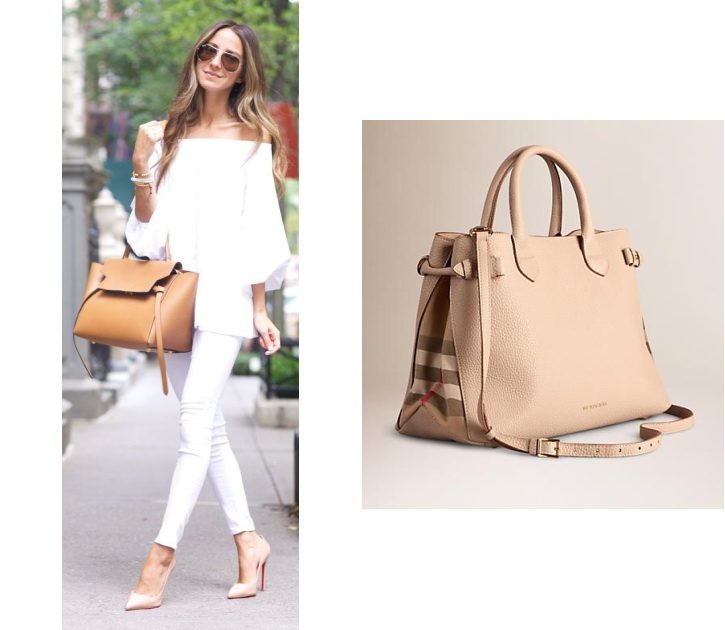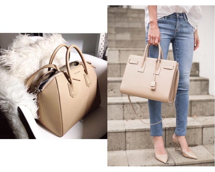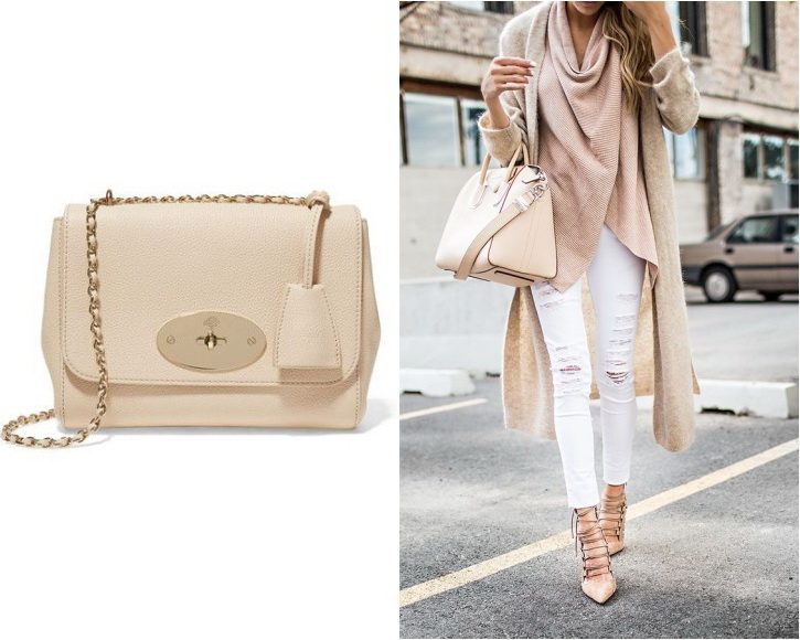 The beige bag is very versatile and there are no clear rules about what things can or should not be worn.