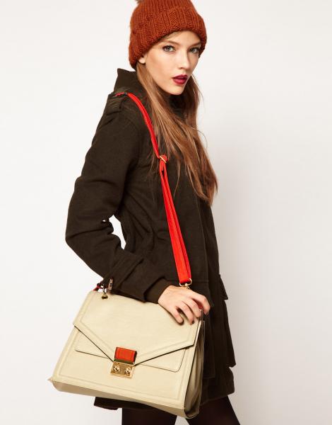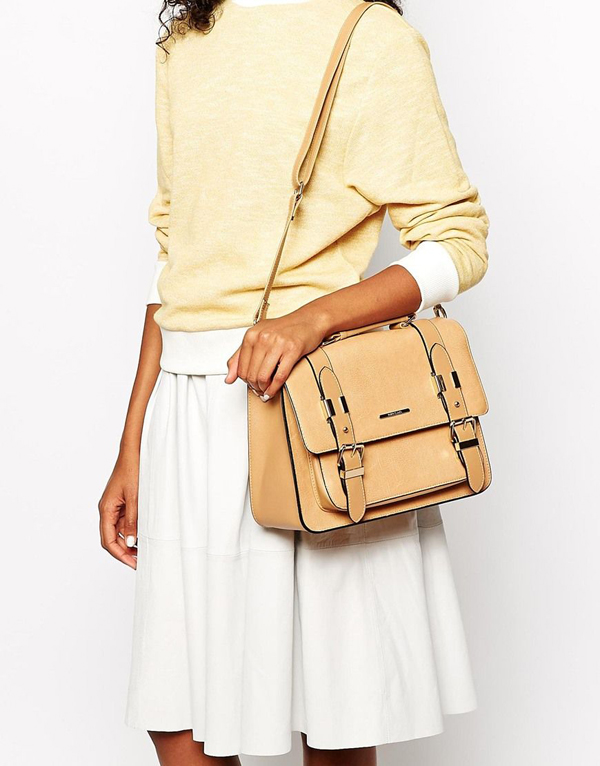- Business and office bows suggest the presence of a more rigid bag on a long handle that will be comfortable to carry around and in which important documents cannot be crumpled. Dress style case, fitted jacket and classic boat shoes perfectly complement the beige bag under the skin of a reptile.