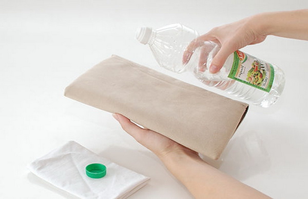 - Surface made of leather or leatherette. Leather bag, despite the conviction of many women, you can not wash completely, whether it is a hand wash or machine wash. It can harm her appearance and even spoil it completely. For its cleaning, you should use a special solution that can be purchased at the store or prepared by yourself. The composition of household solution can be in equal proportions of ammonia and soap, dissolved in a glass of water. After using a soft sponge, you should manually gently walk over the entire surface of the product, paying attention also to metal parts. After the dirt has been removed, the accessory must be re-drawn around with a clean sponge and wiped dry with a towel. A bag of genuine leather can be moistened with a special cream, causing it to the surface. It is necessary to leave the bag for a short time so that it has time to dry, and then carefully remove the excess with a cotton pad.