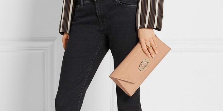 In turn, the lacquer beige coating looks most interesting on small bags designed for publishing and decorated with interesting details.