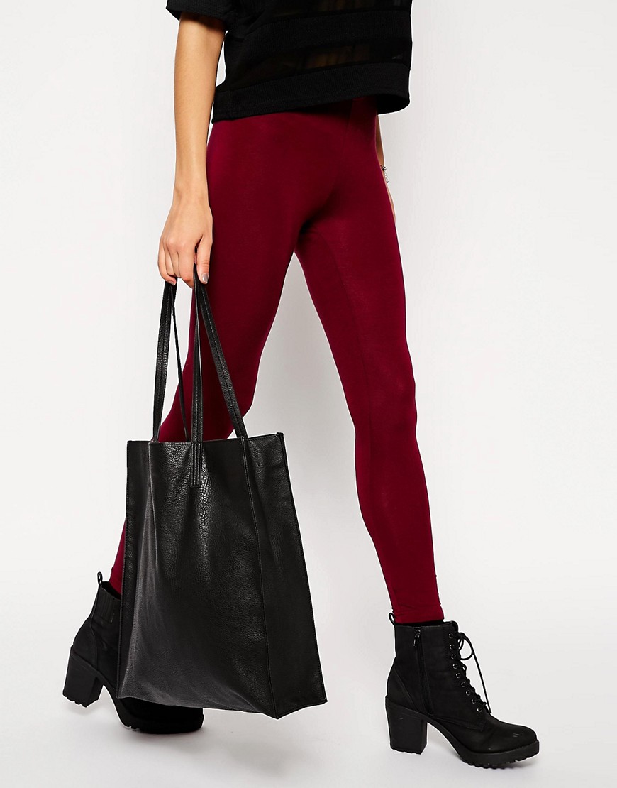 - If you want to create a beautiful business image, then you should dress up in a loose and long white shirt or top, black tight leggings or pants and sharp-nosed shoes of red color on the stiletto. Against this background, a large black bag made of genuine leather will look great.
