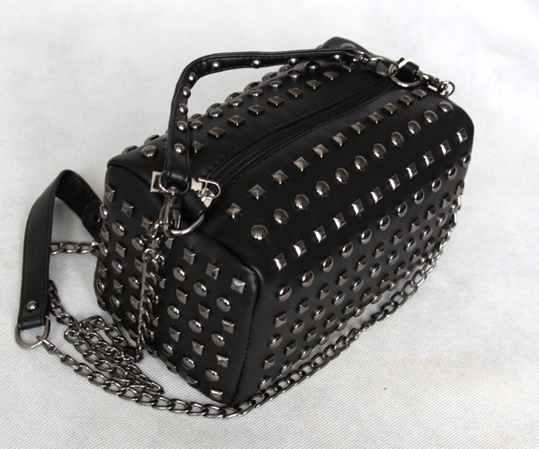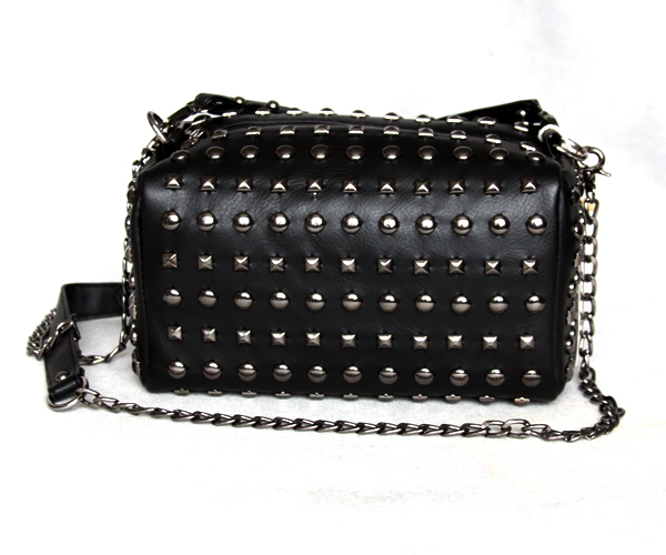 Designers of the company develop not only wicker, but also smooth handbags of small size, supplemented with metal rivets and chain straps. They look boldly and effectively in a youth image.