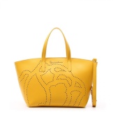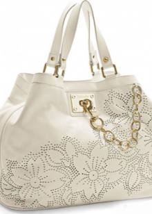 The company produces many models in laconic monochromatic colors, but with unusual decor elements. One of them is the New Ninfea collection. It contains almost all forms of bags. The pattern on these models is reproduced using perforation techniques.