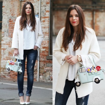 Many handbags fancy shapes, decorated with taste, where different in texture materials are very harmoniously combined with each other.