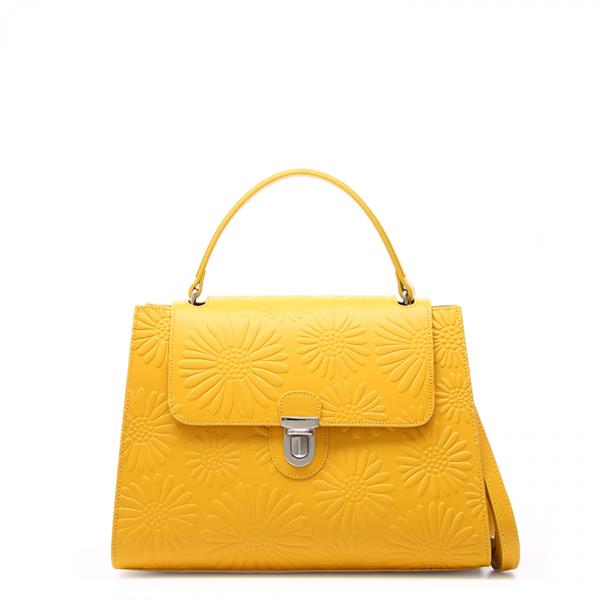 Giulia is another direction in monochromatic colors. Saffiano leather models with a daisy-embossed pattern and contrasting lining are extremely attractive.