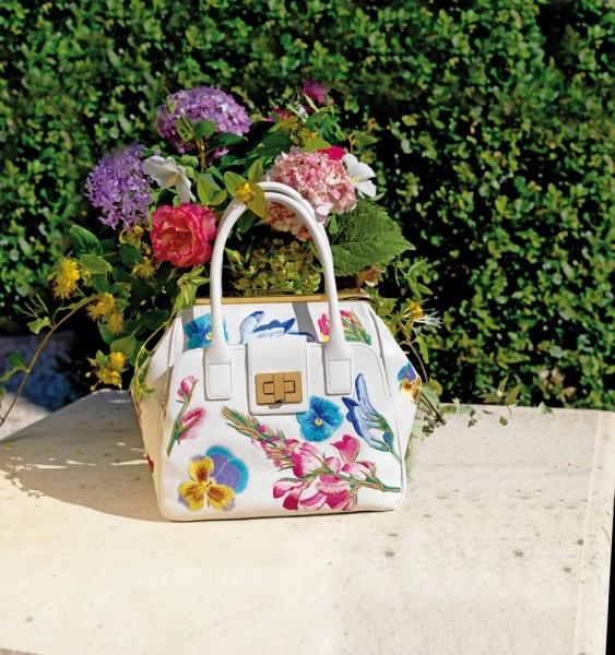 Great color solution, which is actively used by the company - prints. In different collections they are used in various versions. The collection Cristina and Alessandra use prints from delicate flowers in pastel colors, made in the form of watercolor excellently, look on bags of different shapes.