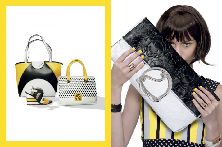 In addition to the Cartoline series, the company annually releases many other collections. Design in the style of the 70s presented in the collection of Rita. Laconic models are decorated with multi-colored stripes of leather. Bright and colorful collection of New Lady, with prints in the form of a car, bus, hours.
