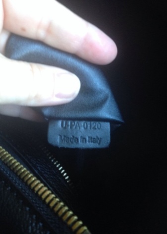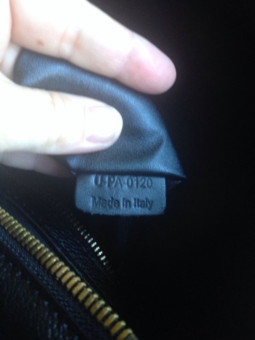 - Label with the logo. Inside all the original bags, there is a leather label with a brand logo embossed on it. On the reverse side is the model number and the inscription Made in Italy.