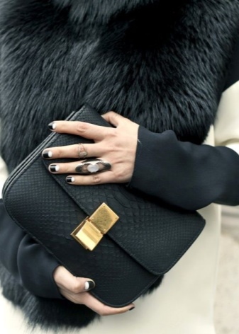 Bags from the fashion house Celine often look very reserved and do not distract attention from the bow itself, they very elegantly complement the images. Most bags have on themselves only one decoration - the original clasp. In many collections, this element looks different: in the form of a buckle of gold or silver color, in the form of a small lock of a rectangular or square shape, round and square fasteners-latches.