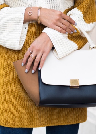 The most interesting options were bags, combining three colors at once. This option is convenient because it allows you to choose a bag for clothes of any color and style.