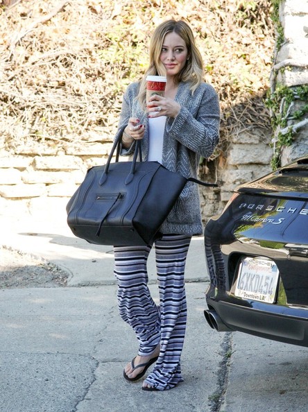 For example, Hilary Duff appeared in a photo of the paparazzi in ordinary black clothes and dark glasses, but her discreet image was diluted with a bright yellow trapezoid-shaped bag from the Celine Trapeze collection.