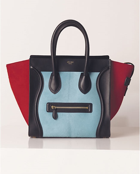 Luxury and comfortable Celine Luggage handbags have become known for their versatility. They are available in three sizes, and differ in the colors and materials used.These models boast a bold design element - leather inserts from the skin of a pony and reptiles.