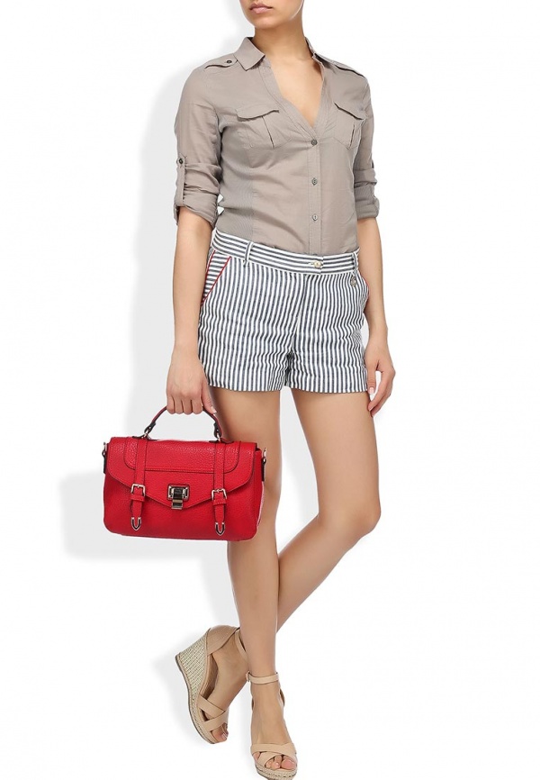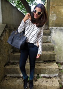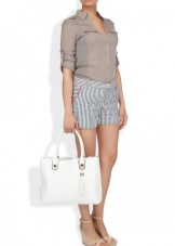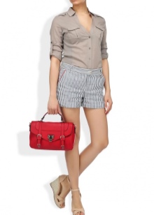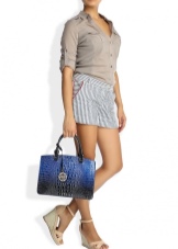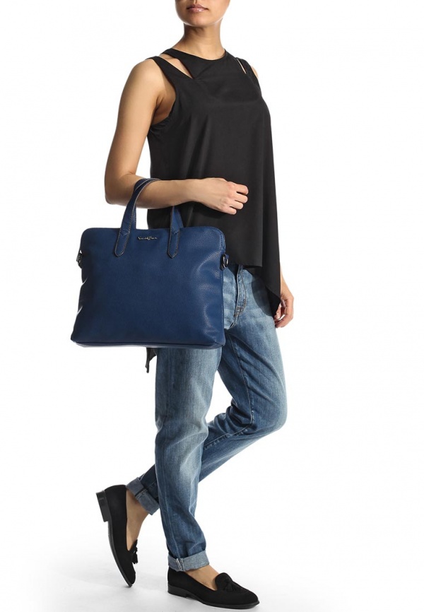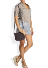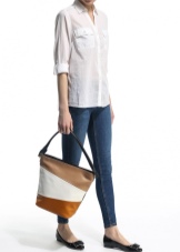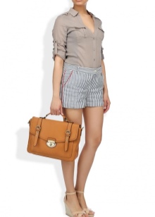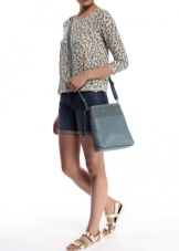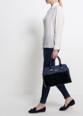 For the embodiment of everyday onions, you can pick up a small handbag in the form of a compact briefcase with short handles. The blue model with multicolored handles is beautifully combined with your favorite jeans, snow-white tunic and exquisite high-heeled sandals.