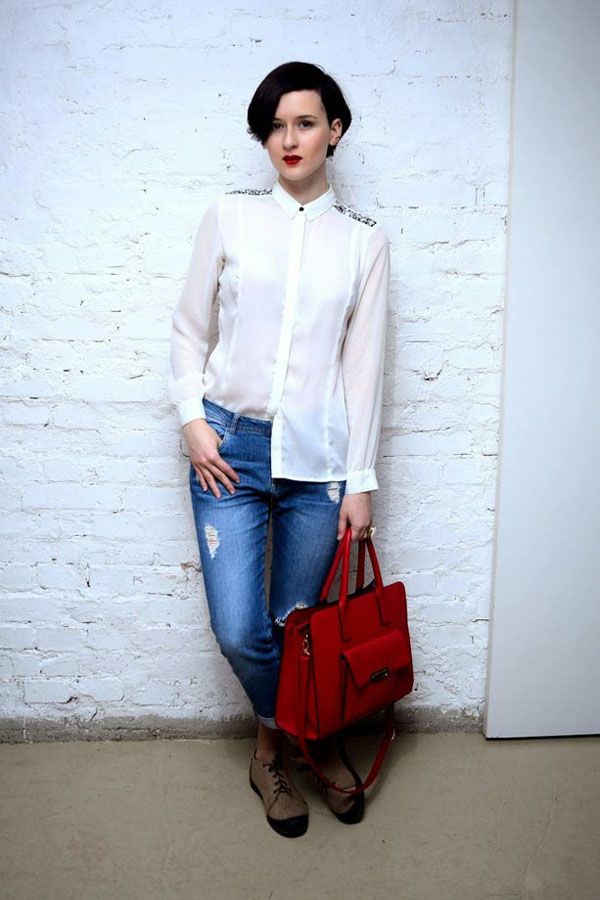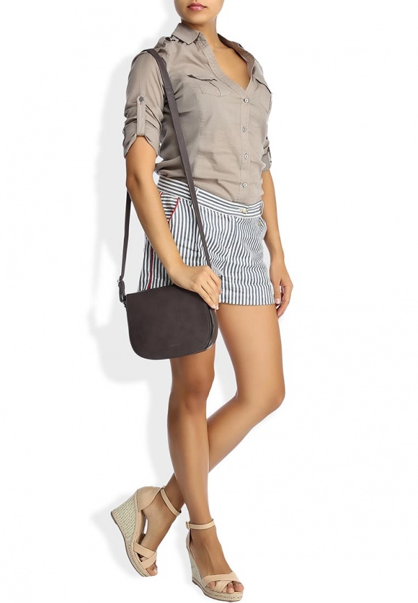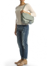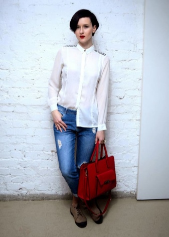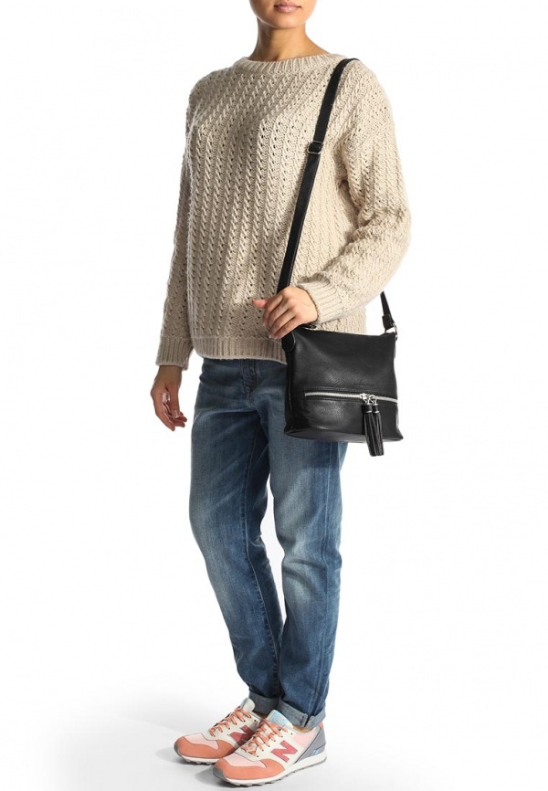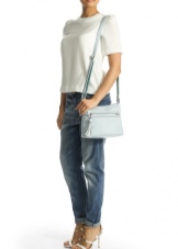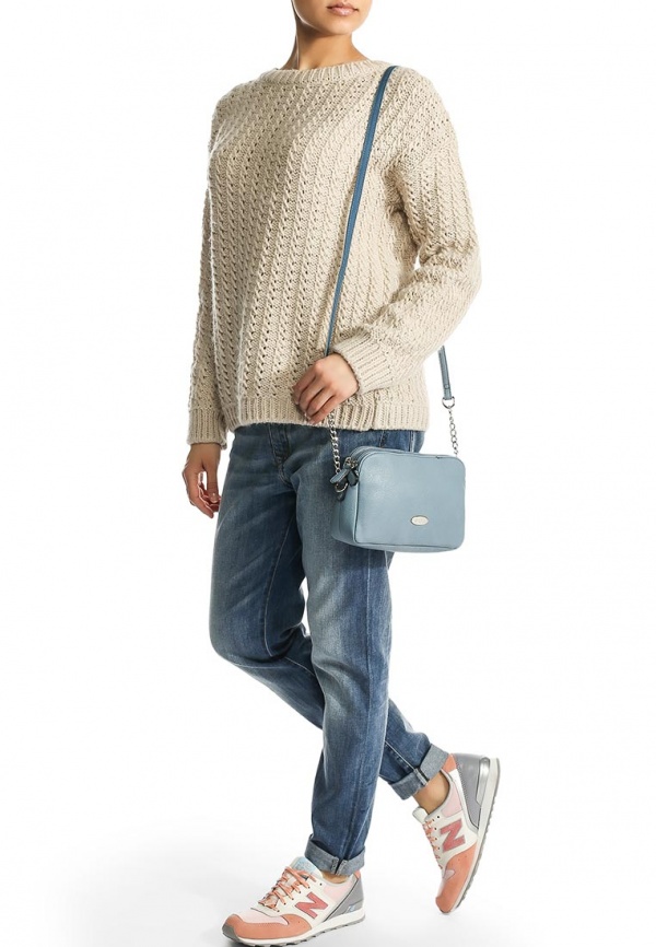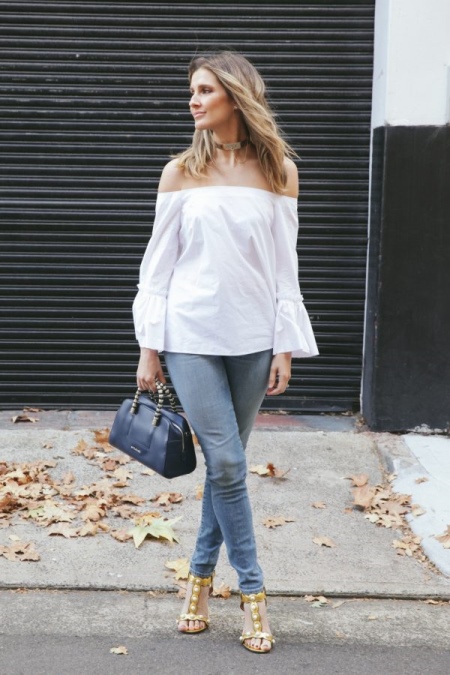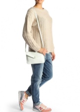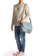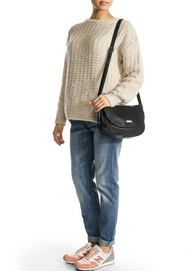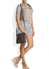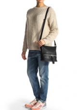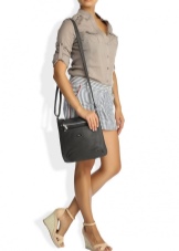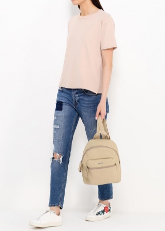 If you prefer an active lifestyle, then you should look at the compact models on a long strap. Convenient and comfort in the first place, although the stylish design attracts the attention of many girls. The cream colored model looks beautiful in an ensemble with beige jeans, a blue denim shirt and comfortable golden loafers.