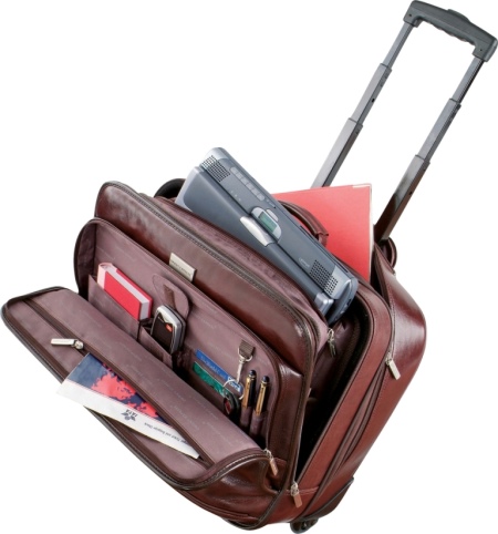 For a large number of documents and on trips often use travel bags on wheels with a long handle, which, if necessary, is drawn out or folded.