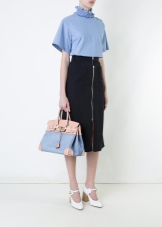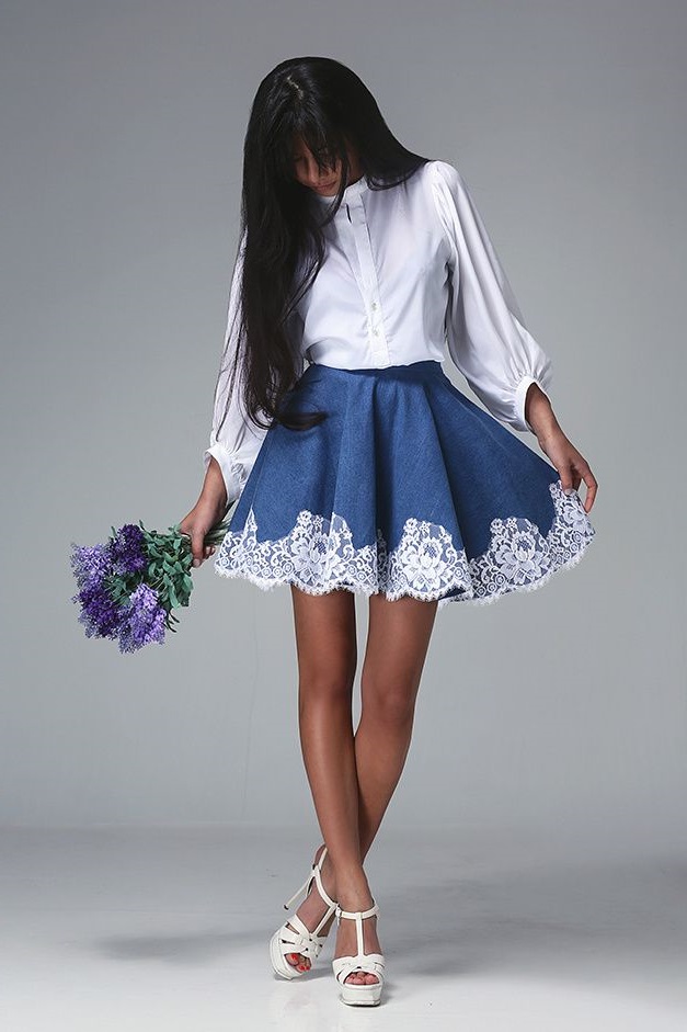 This fabric looks heavy, so the ideal way out is to wear it in combination with something light, while a completely denim image is something that the girl will not exactly fit.