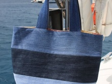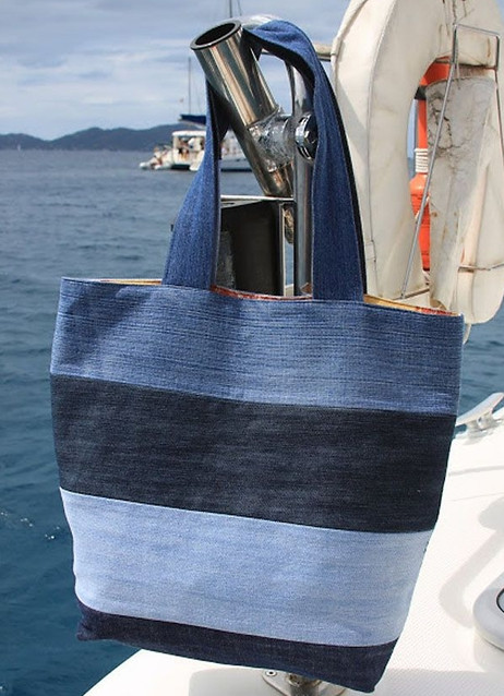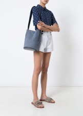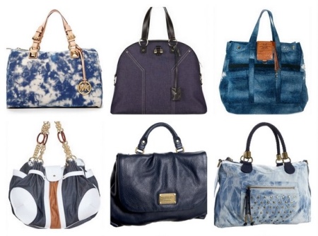 - The bright blue color of the denim bag is likely to be appropriate only on the beach - there it will harmonize well with the color of the water. In all other cases, this solution is likely to seem out of place as a bright spot, and if the image itself is bright, it will turn out to be faded.