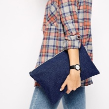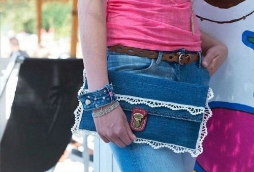 Denim also looks interesting as a basis for a small female handbag for an evening out, designed for the most basic - a mobile phone, keys, a purse and small improvised cosmetics.