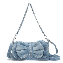 Small denim bags designed for evening exits. With a properly selected image, such an accessory adds to the owner of tenderness and femininity, and this is just what you need for a little romantic walk or a hike in a cafe.
