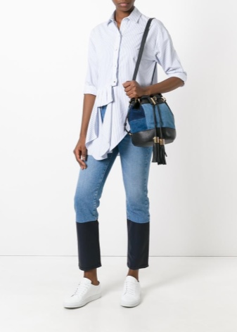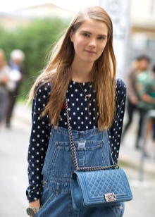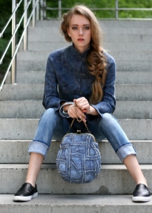 Finally, a denim bag goes well with the casual style, and there are only two rules to follow. First, avoid too bright colors, not to mention colorful clothes - use only plain clothes. Secondly, open legs in all cases are combined with a denim bag better than pants, so wear dresses, skirts or short shorts with this accessory.