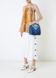 A denim bag is packaged well with a minimalist look, like a plain T-shirt, light shorts and athletic shoes. The combination with light summer dresses also looks interesting - only without too bright and eye-catching shades, something more simple is needed here.