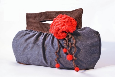 Knitted and denim bag is somewhat less common, and has the opposite goal - knitted insert, on the contrary, should slightly reduce the brutality of denim, not canceling its best qualities. The original creators of this fabric a century and a half ago could hardly have guessed that their invention could become a material for fashionable women's accessories, so they didn’t even try to give it femininity or tenderness - it was the combination with knitted fragments that was intended to correct this omission.