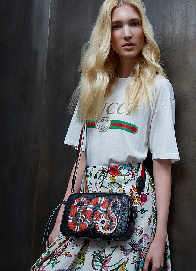 - Each fashionista is known label Gucci. Products of this brand is truly luxurious and desirable. All accessories are made of soft and genuine leather of the highest class. In its latest collections, the brand has demonstrated chic bags made of durable crocodile and snakeskin.