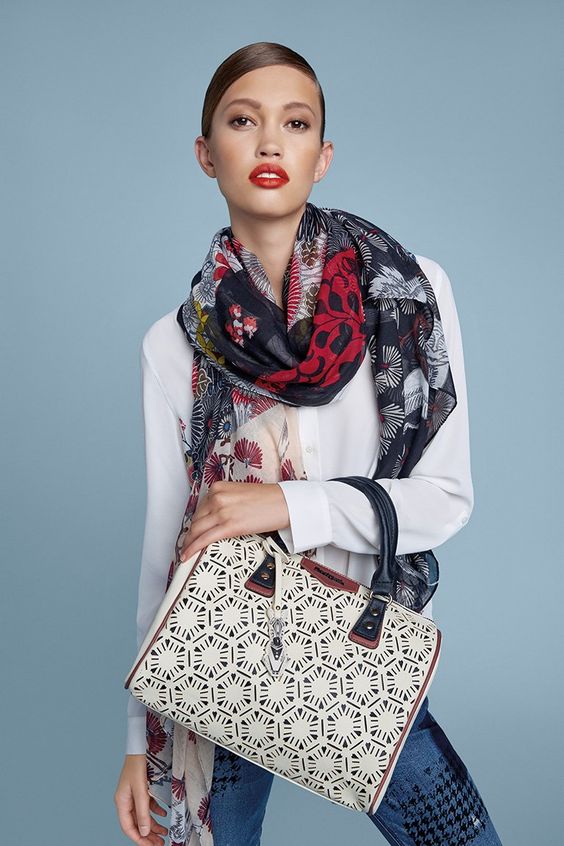 Desigual women's handbags have an incredibly catchy and memorable design.. They are decorated with bright prints, colorful drawings, ethnic patterns, tassels, embossed, etc. Such things will perfectly fit into a fresh and original image. All accessories are made of genuine and artificial leather, as well as durable and high-quality textiles.