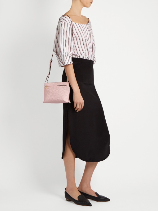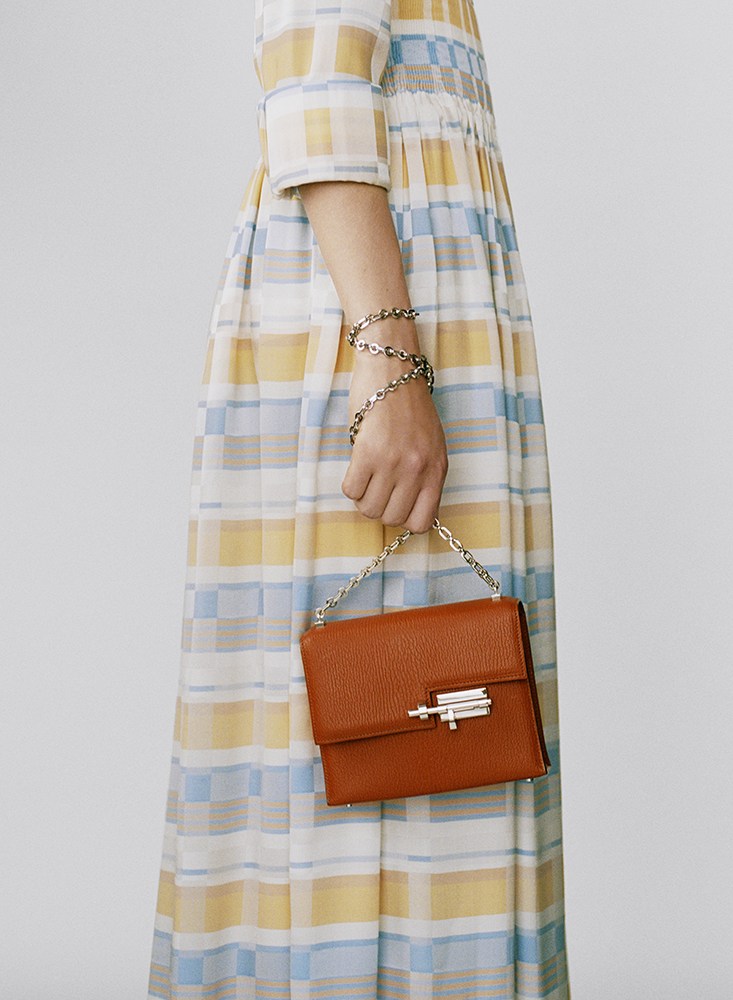 Demand today and brand Hermes. This permanent big letter “H” is the trademark of the brand. It can be found on all accessories, from large bags to small clutches.