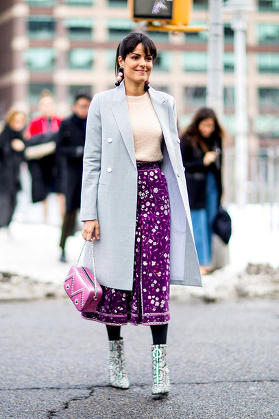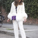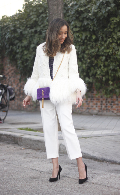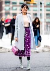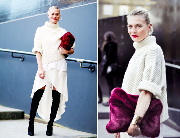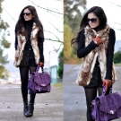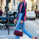 It is interesting to beat the color, if you wear clothes with fur. Looks luxurious coat in a cell, jeans and a bright bag. The next bow is no less incomparable: a coat, a cut-off at the waist, dark skinny pants, high black boots and a leather bag in the tone of stole.