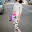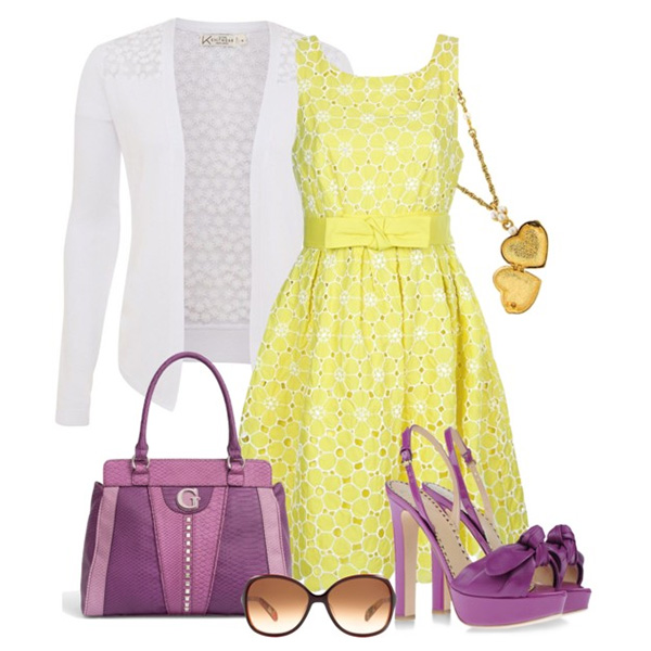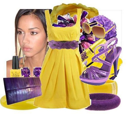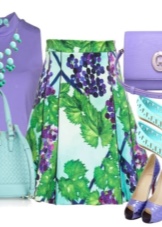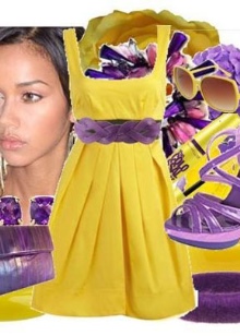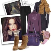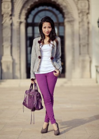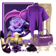 It is good to combine gentle shades of blackberry and violet tones with pale yellow and pink dresses. This color scheme makes the bow incredibly feminine and fragile. Good looks deep purple color and with golden-brown clothes. If you want to soften the image, choose beige outfits, purple will perfectly shade it. And in the gray colors he breathes life and energy.