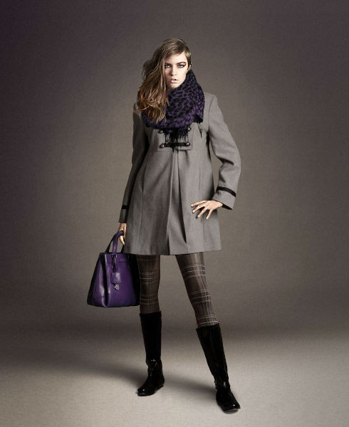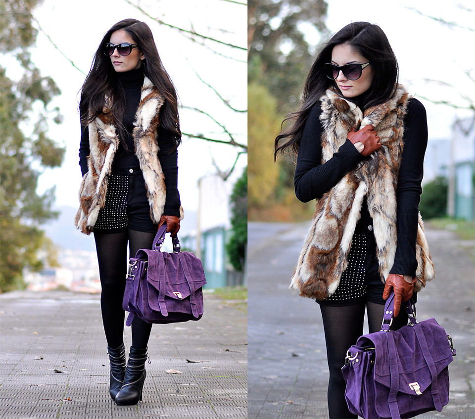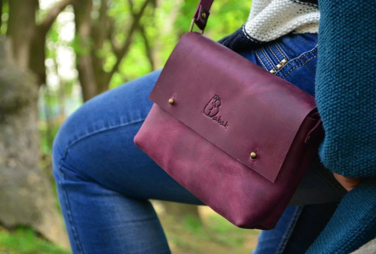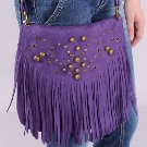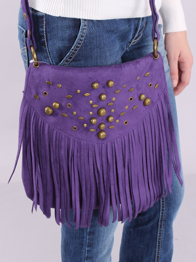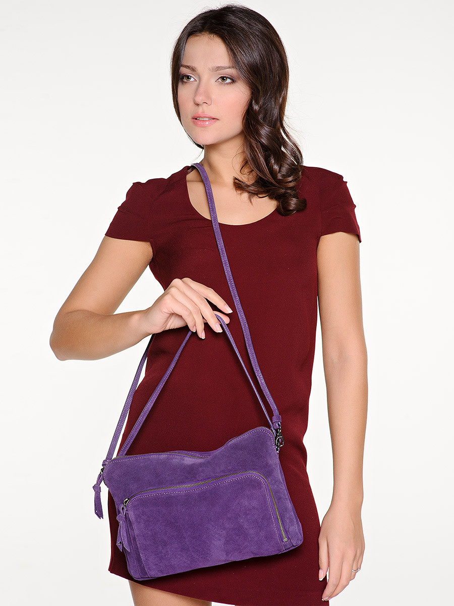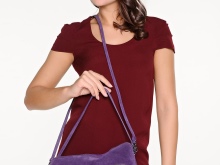 In the autumn and winter, wearing a purple handbag is more than appropriate, because it is a cold shade. Leather models are in perfect harmony with leather coats, jackets and jeans. Suede handbags are good to wear if you have velor, cashmere or woolen clothes.