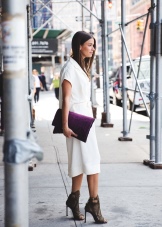 For parties, stylists offer to use a small clutch. Perfectly look elongated purple models on a golden or silver chain. The favorites of this season are clutches-envelopes, which are perfectly combined with any evening look. It is best to wear such a clutch without a chain.