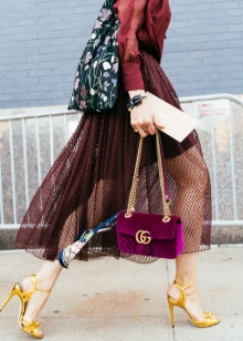 Most purple handbag is suitable for winter, but you can create quite a lot of summer looks. It is often difficult to choose clothes for such a bag, and this is a disadvantage for many girls. Yes, and the color itself is not for everyone - designers recommend carefully choosing purple accessories in order not to be disappointed later.