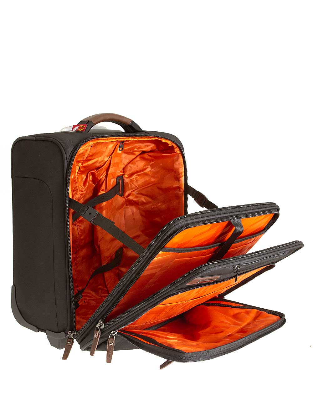 In the manufacture of luggage, the manufacturer uses a pair of mobile wheels, a zipper with a double slider and a retractable handle, which not only organically fit into the overall design, but also are necessary practical attributes of any travel bag.