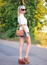 - A set consisting of light straight trousers, a striped blouse, an elongated knitted waistcoat and shoes with a small quadrant heel will look stylish and feminine. This ensemble can be supplemented with a small handbag that matches the color of the blouse or waistcoat. Add a bright scarf to the image - it will make it more alive and harmonious.
