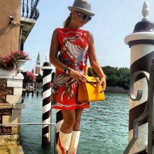 - Wear a flirty, fitted strapless dress with a full skirt. Against such a dress, a branded bag in the color of the dress will look harmoniously. This simple, but elegant set will be fitted with pointed-heeled pin-up shoes or open sandals with thin straps.