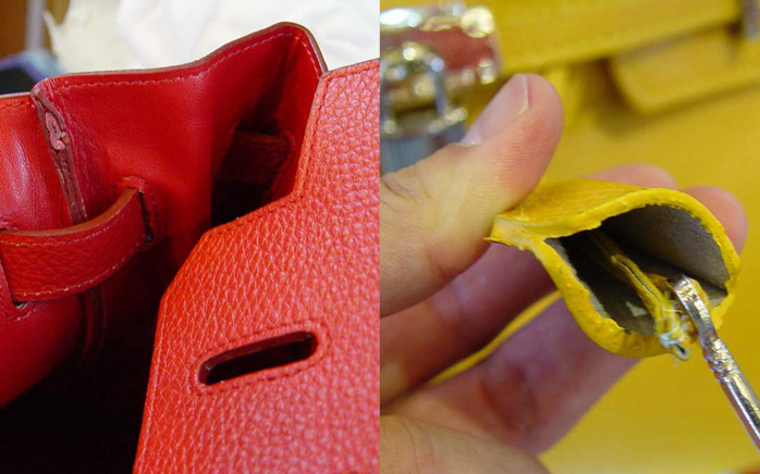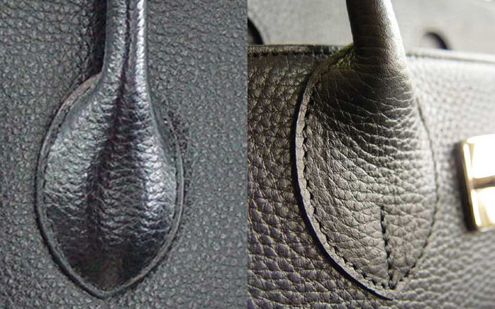 - Pay attention to the seams and stitches in accessories. They will not be straight, and will be stitched "herringbone."