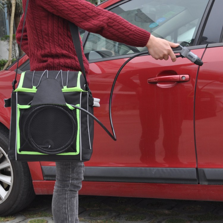 For convenience of operation, a strap over the shoulder and attachment to the handlebar is provided. The necessary trivia can be additionally placed in mesh pockets on the sides of the product.