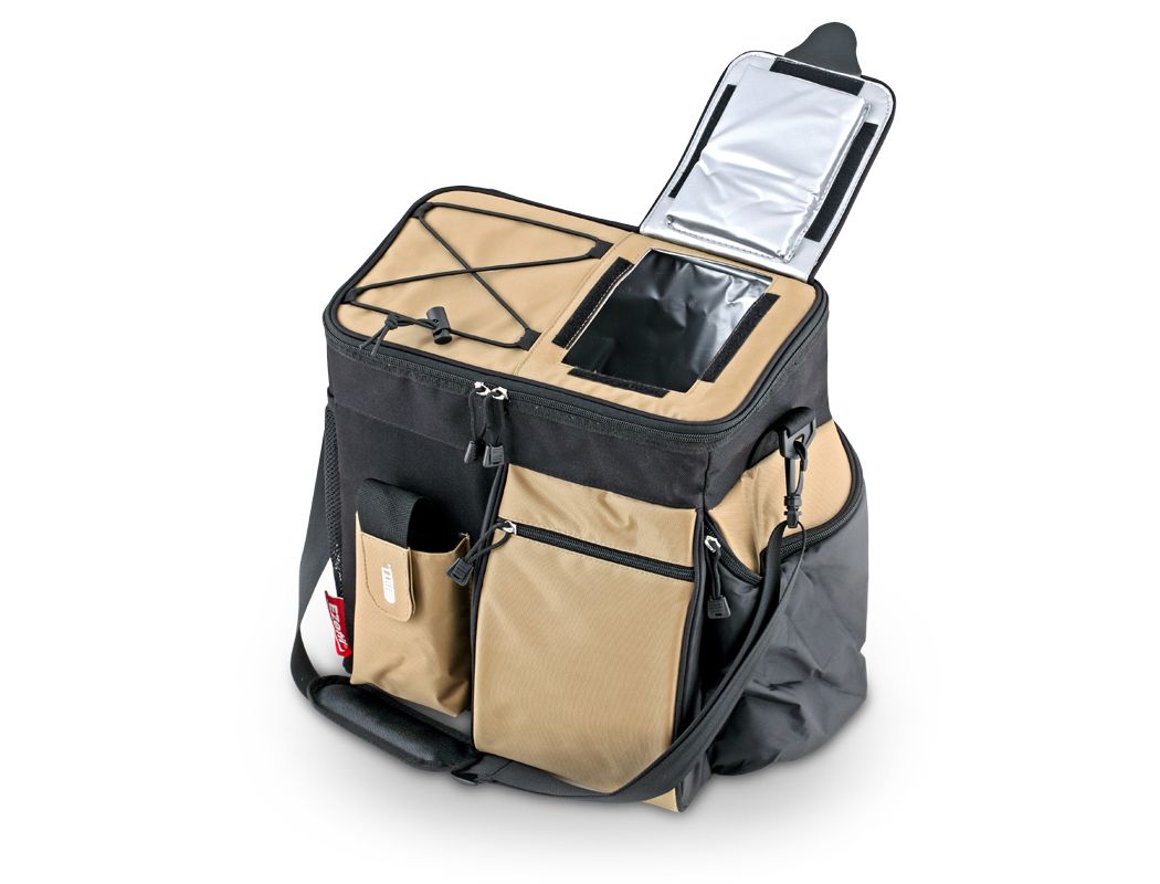There are a lot of vital moments when you need to take extra liquid on the trip, whether it be drinking water, juice, dairy or alcohol. For this purpose there are cooler bags of a special format with compartments that repeat the shape of a standard bottle up to 15 centimeters in diameter.