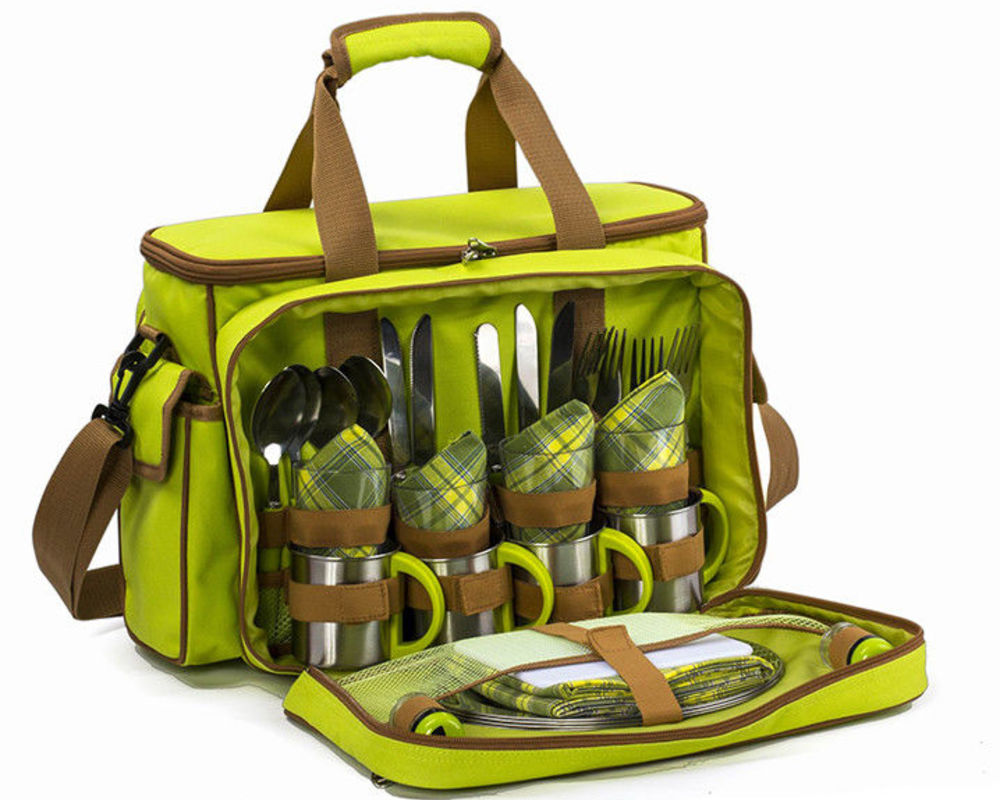 It differs from a travel bag for food, in addition to a thermal compartment for storing products, it has a set of dishes for a group of 4-6 people. The dishes are not disposable, made of high-quality plastic, which does not absorb odors, does not fade, and is perfectly washed both in the dishwasher and in the traditional way.