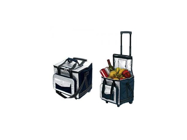 A thermo bag on wheels is built on the same principle as a travel case. It is convenient during long walks, because it does not need to be dragged, and even a child can roll along.